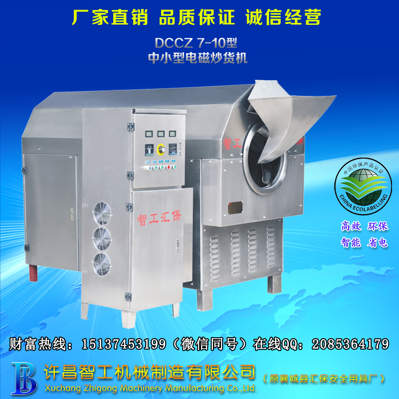炒货机适合油厂加工的理由: 2.炒货机火力大,上热迅猛,炒制出来花生、芝麻均匀度高,出油率高,出油流畅,植物炒的好不好才能决定油香不香。 3.炒货机寿命长、故障低,寿命可达20年没问题,为客户有效节约成本。 4.温度可根据炒制不同原料设定不同温度,火力大小、锅体转速都可手动控制调节,容易控制火候,炒熟自动报警,节约人工,一人可操作多台! ![]() 社会发展趋势太快,每个行业竞争都很大,电磁炒货机品质保证,保障客户权益!炒货机不仅能加工花生芝麻,也适合加工各种干果和坚果类,如;板栗、瓜子、松籽、榛子、杏仁、菜籽、咖啡豆、红枣、核桃、各种豆类、麦类、米类等。适用于食品加工厂、农贸市场、食品专卖店、连锁店等处定点加工和经营,符合生产的需要。 许昌智工机械制造有限公司全体员工积极贯彻落实“科学发展观”精神,团结一心,众志成城。以精研精工,精心精致,精益求精的质量理念,不断提升产品的性能指标。以诚信、厚德、创新、责任的企业精神。为“中国制造”向“中国智造”转变而努力,为打造工业强国而奋斗。